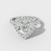 The Adeline Engagement Ring showcases expert craftsmanship with a distinctive heart-shaped center stone, embodying romantic elegance. Its French pave halo and side stones enhance brilliance and add refined sparkle, creating a timeless symbol of love designed for those who appreciate intricate detail and sophistication.