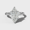 This Alice Marquise Diamond Engagement Ring features a stunning marquise-cut stone set in a classic solitaire design. Its claw prong setting securely holds the gemstone, maximizing light exposure for exceptional brilliance. Expertly crafted, this ring balances timeless elegance with a refined silhouette, making it an ideal choice for a sophisticated engagement symbol.