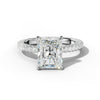 The Caroline Engagement Ring features a beautifully cut radiant center stone set as a solitaire, emphasizing its brilliance and fire. Flanked by three rows of meticulously pave-set side stones, it adds exquisite sparkle and depth without overshadowing the main gem. Designed with expert craftsmanship, this ring offers a perfect balance of classic elegance and contemporary sophistication, making it an ideal symbol of enduring love.