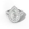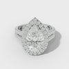 The Hailey Engagement Ring features a stunning pear-shaped center stone surrounded by a delicate pave-set halo, enhancing its brilliance and elegance. The split shank design, embellished with pave-set side stones, adds sophistication and a contemporary edge. This ring perfectly balances timeless beauty with modern craftsmanship, making it an exceptional choice for a meaningful proposal.