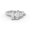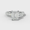 The Kira Emerald Cut Engagement Ring showcases a brilliant emerald-cut center stone securely held by a four-prong setting, enhancing its elegance and clarity. Surrounding the center, pavé-set diamonds add subtle sparkle, creating a refined and timeless design. This ring balances classic sophistication with expert craftsmanship, making it an exceptional choice for a meaningful engagement.