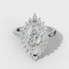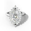 The Lillian Engagement Ring showcases an elegant cathedral setting that elevates the distinctive elongated brilliance of a marquise-cut center stone. This timeless design features delicate floral detailing along the band, creating a romantic halo effect that frames and amplifies the stone's natural sparkle. The cathedral architecture provides structural sophistication while the intricate floral motifs add refined femininity.
