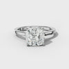 The Lilly Cushion Diamond Engagement Ring features a cushion-cut diamond expertly showcased in a four-prong setting with a hidden halo design. This sophisticated arrangement enhances the stone’s brilliance and depth, offering a refined balance between classic elegance and modern sparkle.