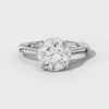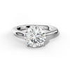 The Millie Round Diamond Engagement Ring showcases timeless elegance with a brilliant round diamond center stone secured in a refined four-prong setting. This design features a sophisticated hidden halo that amplifies sparkle and adds subtle dimension beneath the center stone, while complementary side stones enhance the overall brilliance.