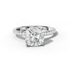 The Noor Cushion Diamond Engagement Ring showcases expert craftsmanship with its pave-set Asscher diamond centerpiece encircled by a hidden halo. This design enhances brilliance subtly, offering an elegant yet distinctive sparkle. Ideal for those who appreciate refined detail and timeless sophistication in an engagement ring.