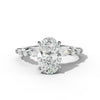 The Rosie Oval Diamond Engagement Ring features a beautifully cut oval diamond secured with four prongs, accentuated by elegant side stones that enhance its brilliance. This expertly crafted design balances timeless sophistication with contemporary style, making it an exceptional choice for an engagement ring that symbolizes enduring love and refined taste.