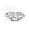 The Rosie Round Diamond Engagement Ring showcases a stunning round-cut diamond secured by a classic four-prong setting, maximizing its brilliance and fire. Accented with meticulously chosen side stones, this ring balances elegance with timeless design.
