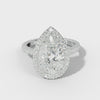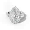 The Sadie Engagement Ring features a stunning pear-shaped center stone, elegantly surrounded by a pave set halo and accent stones. This expertly crafted design enhances the ring’s brilliance and adds depth to the overall look, creating a timeless symbol of commitment and elegance. Perfect for those seeking a refined yet distinctive engagement ring.