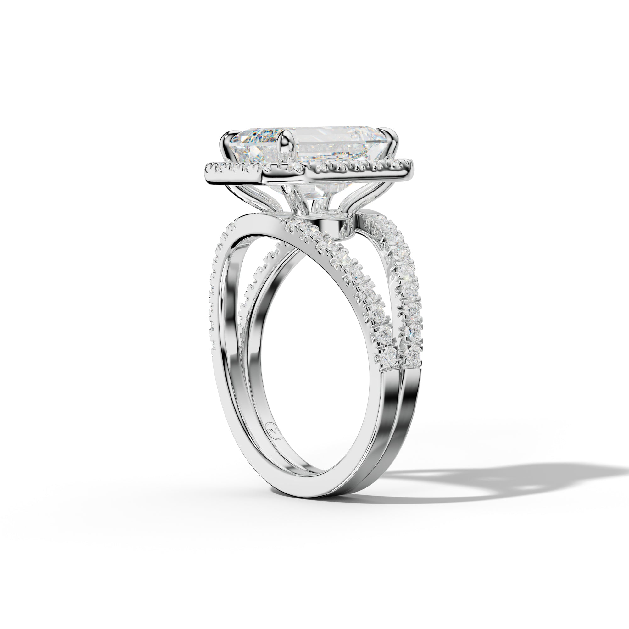 Itzel Emerald Cut Half Moon Side Diamond Engagement Ring