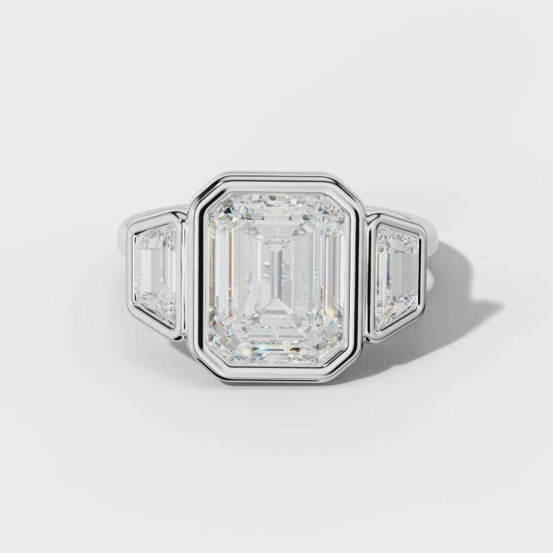 Cleo Emerald Cut With Trapezoid Side Diamond Engagement Ring