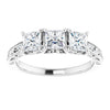 "Experience the timeless elegance of our 1.20 ct. Princess Cut Diamond Wedding Band. The 3 main princess diamonds are complimented by delicate side accent round diamonds and filigree details creating a vintage inspired ring that will sparkle on your special day and for years to come."