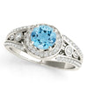 1.10 ct. Genuine Aquamarine Ring With Halo and V Shape Band