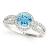 1.10 ct. Genuine Aquamarine Ring With Halo, Curved Open Diamond Band