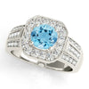 1.10 ct. Genuine Aquamarine Ring With Halo And Triple row Diamond band