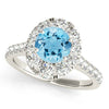 1.10 ct. Genuine Aquamarine Ring With Oval Halo And Delicate Diamond Band