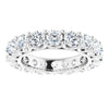 Indulge in timeless elegance with our 4.86 ct. Round Diamond Eternity Band. This stunning band features round diamonds in a shared prong setting, secured by v-shaped sides for added brilliance. Handcrafted in NYC, this band is the perfect symbol of eternal love and commitment.