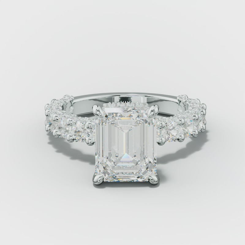Savannah Emerald Cut Diamond Engagement Ring Accented Side Stones