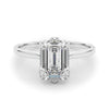 The Esme Emerald Diamond Solitaire Engagement Ring features a stunning emerald cut diamond set on a six-prong, floral-patterned basket. This sophisticated design matches classic elegance with modern style to create the perfect symbol of your commitment.