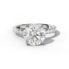 The Juliet Engagement Ring features a stunning round center diamond complemented by a hidden halo that enhances its brilliance discreetly. Expertly pave-set side stones and additional stones underneath the band add exceptional sparkle and depth, offering a luxurious and intricate design. This ring embodies refined elegance and expert artistry, perfect for expressing a timeless commitment.
