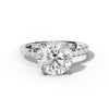 The Lucy Engagement Ring features a stunning round center diamond, expertly showcased with pavé-set side stones that enhance its brilliance and sparkle. Additional pavé stones placed underneath add subtle elegance, ensuring the ring shines from every angle. This design balances timeless beauty with meticulous craftsmanship, making it a refined choice for those seeking sophistication and lasting shine in an engagement ring.