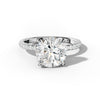 This Noor Round Diamond Engagement Ring features a sophisticated pave setting that enhances the sparkle of the band. The hidden halo design adds a subtle layer of brilliance around the center diamond, creating a captivating visual depth while maintaining an elegant and refined profile.