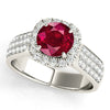 1.35 ct. Genuine Ruby Ring With Halo And Triple Row Diamond Band