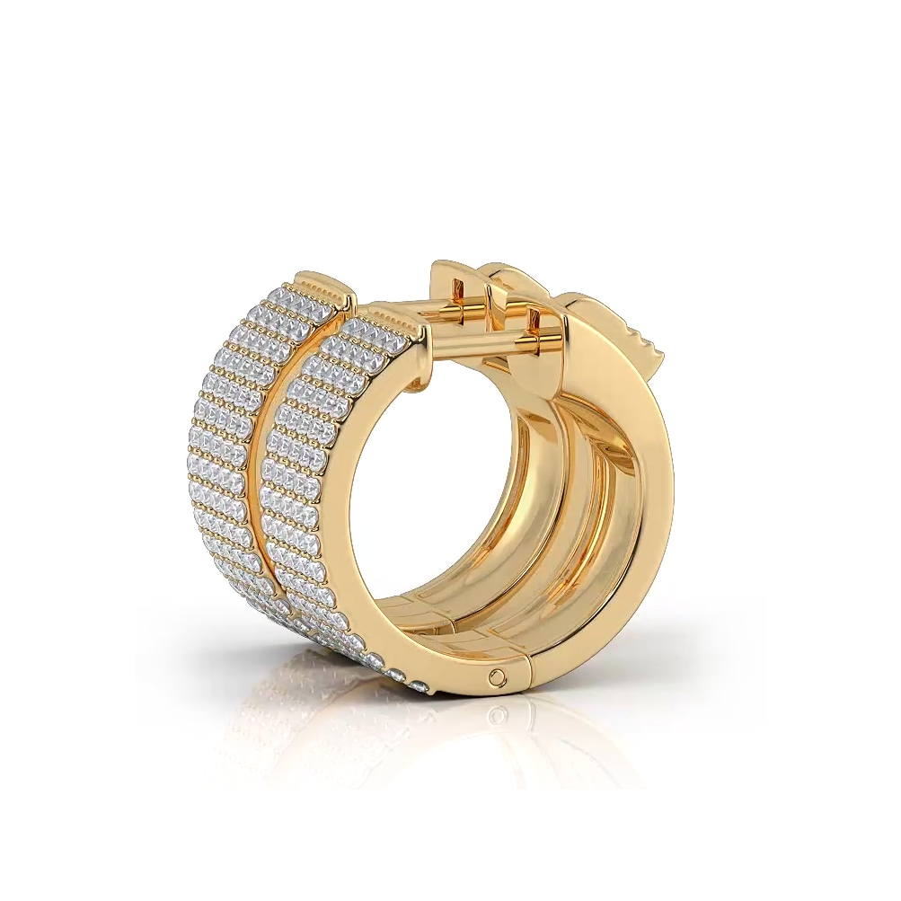 Indulge in luxury with our 1.0 ctw Five Row Round Brilliant Diamond Huggie Hoop Earrings. Meticulously pave set in NYC, these earrings exude sophistication and elegance. The 5 rows of round diamonds will elevate any outfit, making you feel like a true style connoisseur. Treat yourself to the ultimate accessory.