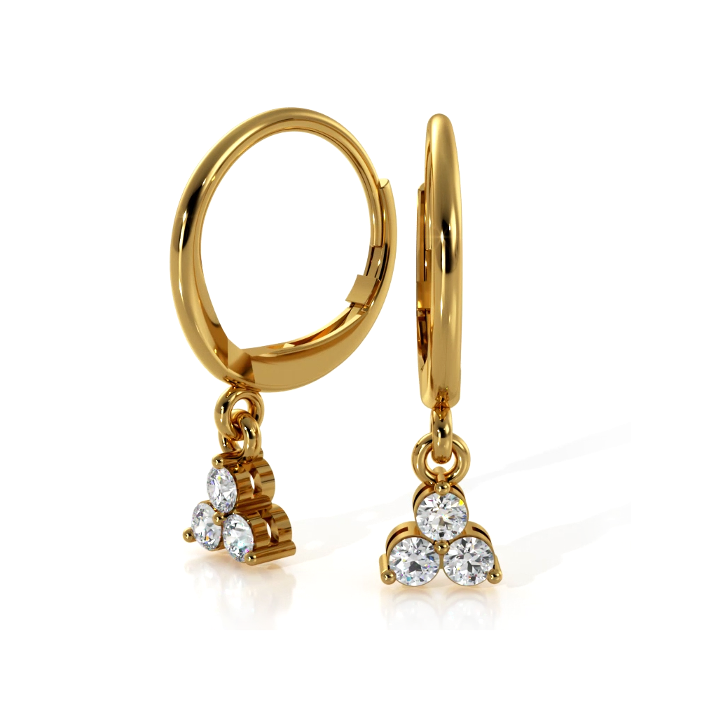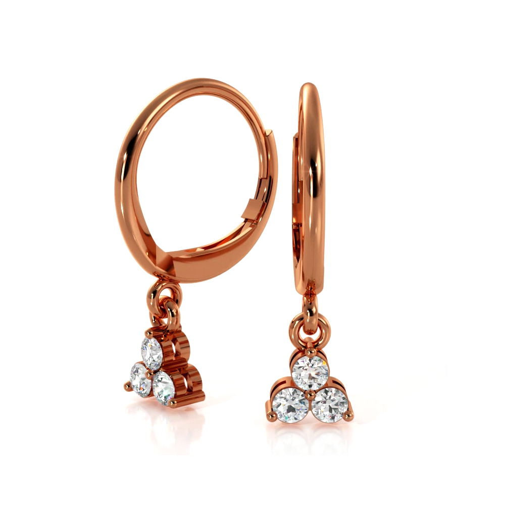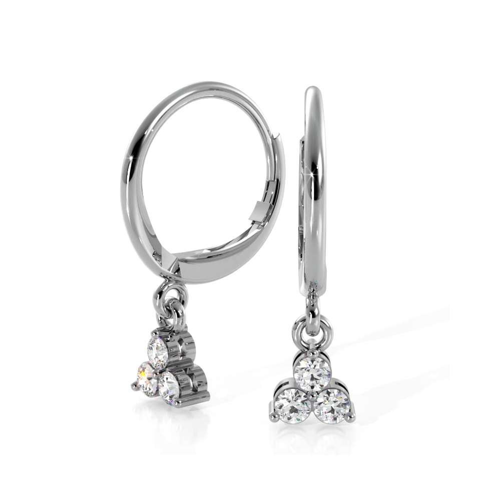 Trillium 0.70 ctw. Three Stone Dangle Round Diamond Hoop Earrings