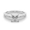 The Victoria Princess Diamond Solitaire Engagement Ring is a timeless classic — a single Princess cut diamond held in four prongs atop a detailed filigree band and surrounded by a millgrain accent. Vintage-style detailing makes this ring a beautiful and unique choice for a lifetime commitment.
