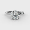 The Siya Round Diamond Engagement Ring showcases timeless elegance with a brilliant round diamond secured in a sophisticated four-prong setting. The hidden halo design features delicate accent diamonds nestled beneath the center stone, amplifying sparkle and creating an enchanting visual effect while maintaining a refined, understated profile.