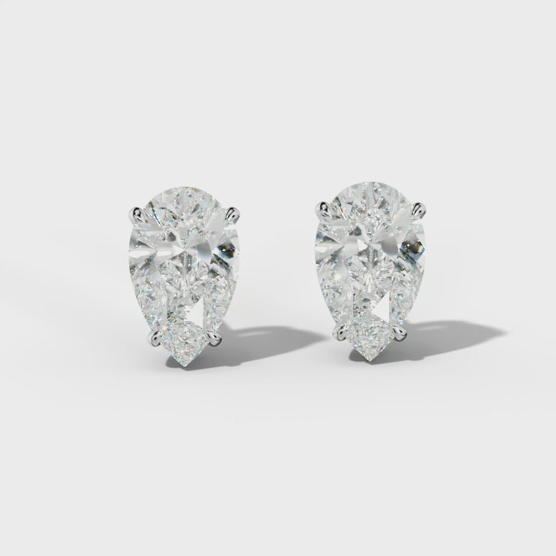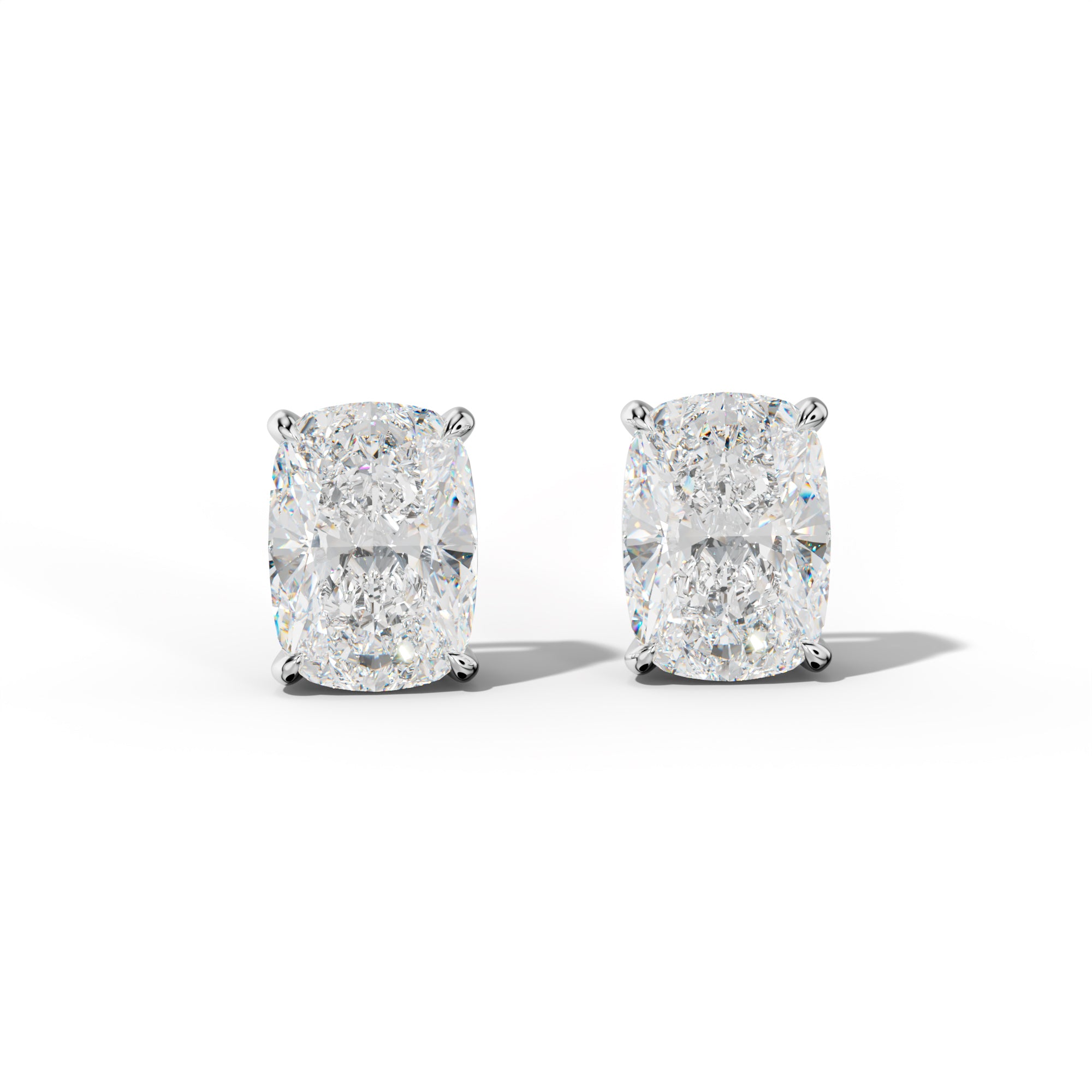 Elongated Cushion Diamond Stud Earrings With Four Claw Prongs