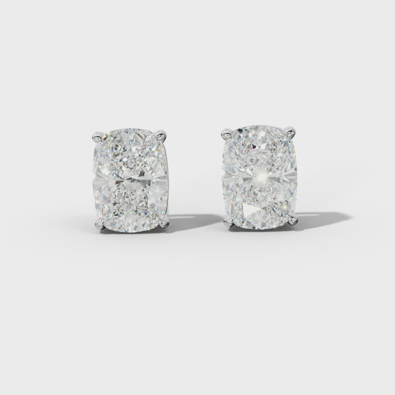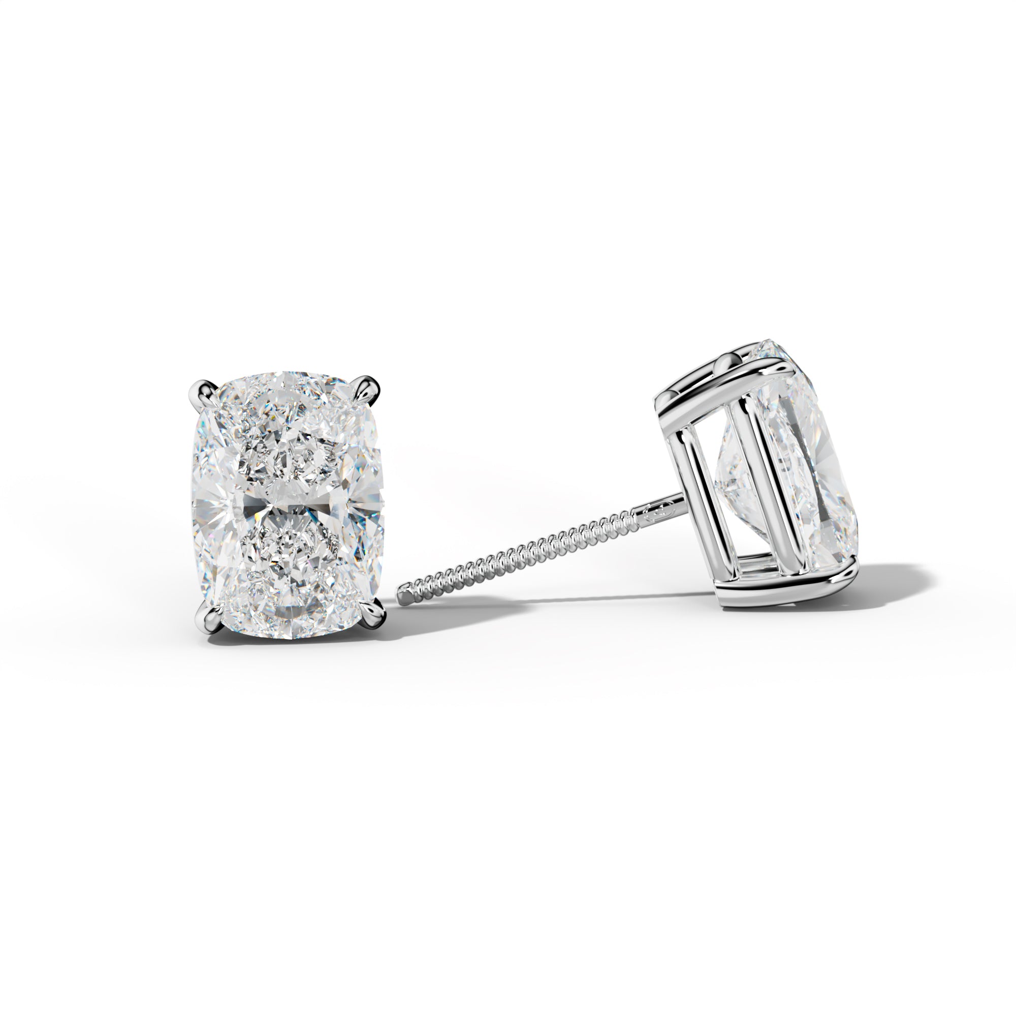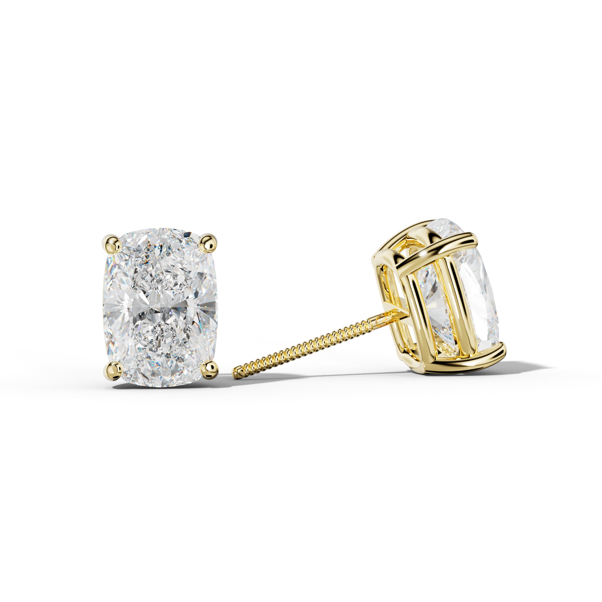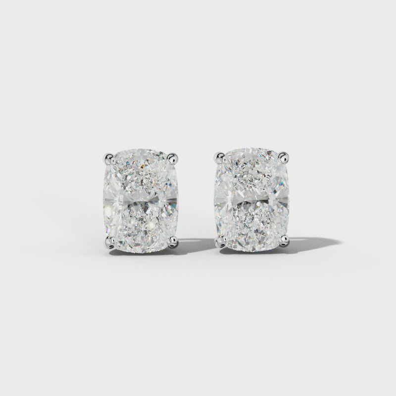 Elongated Cushion Diamond Stud Earrings With Classic Four Prongs