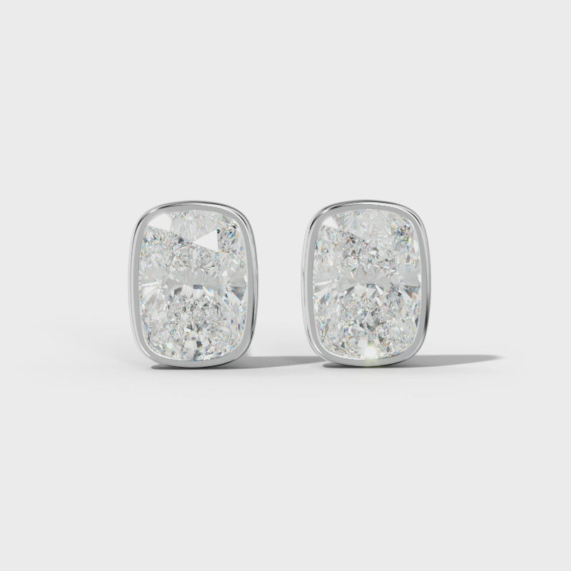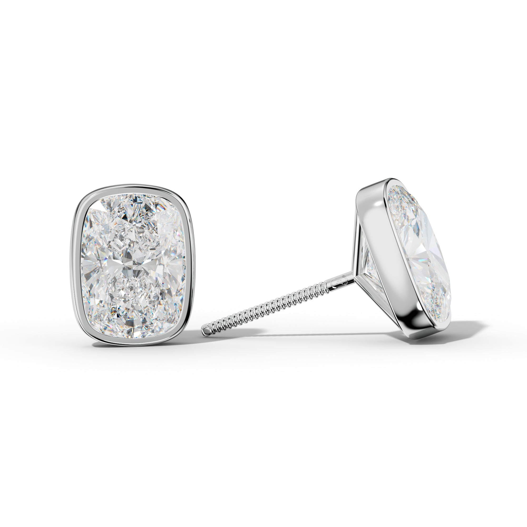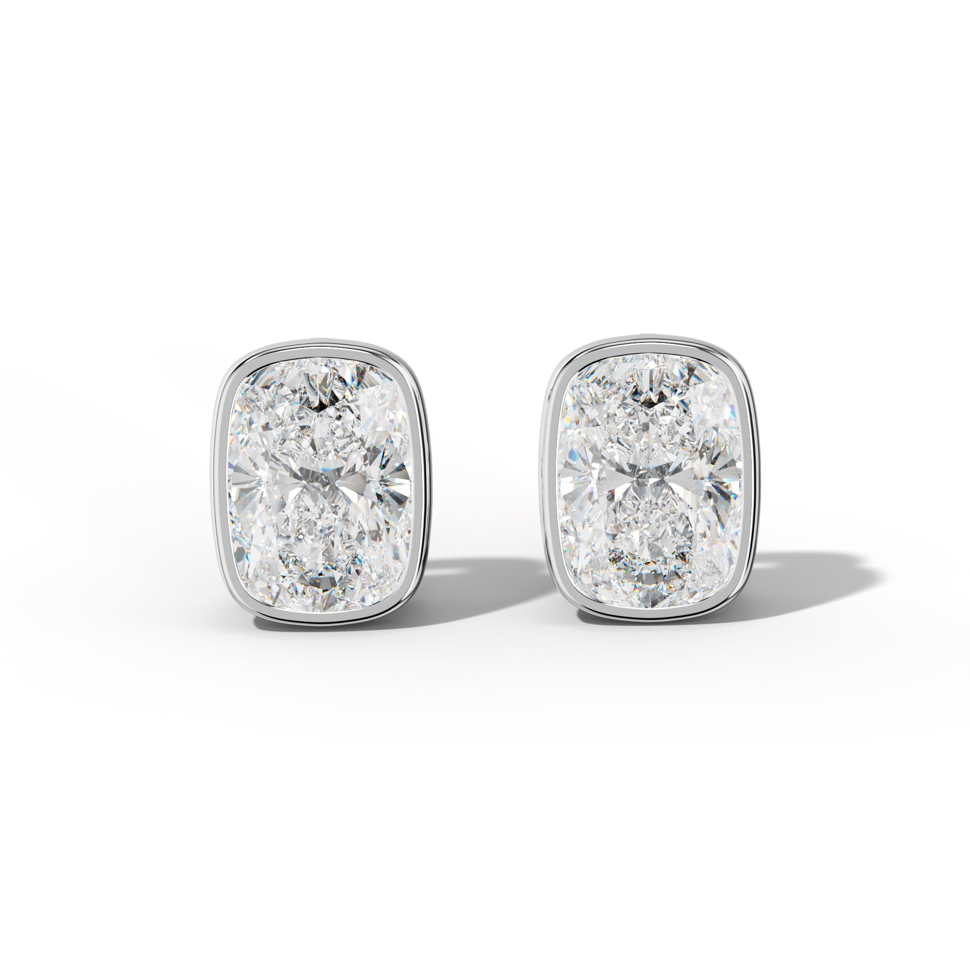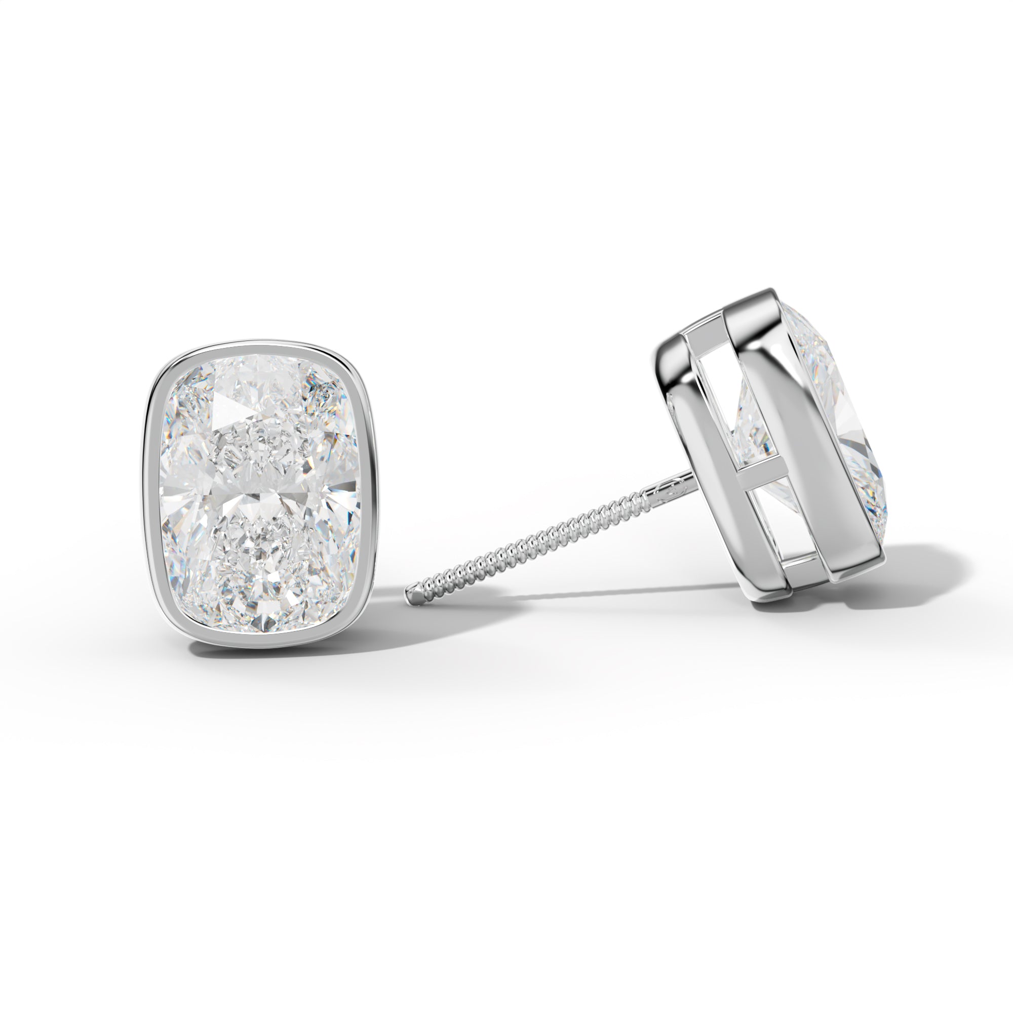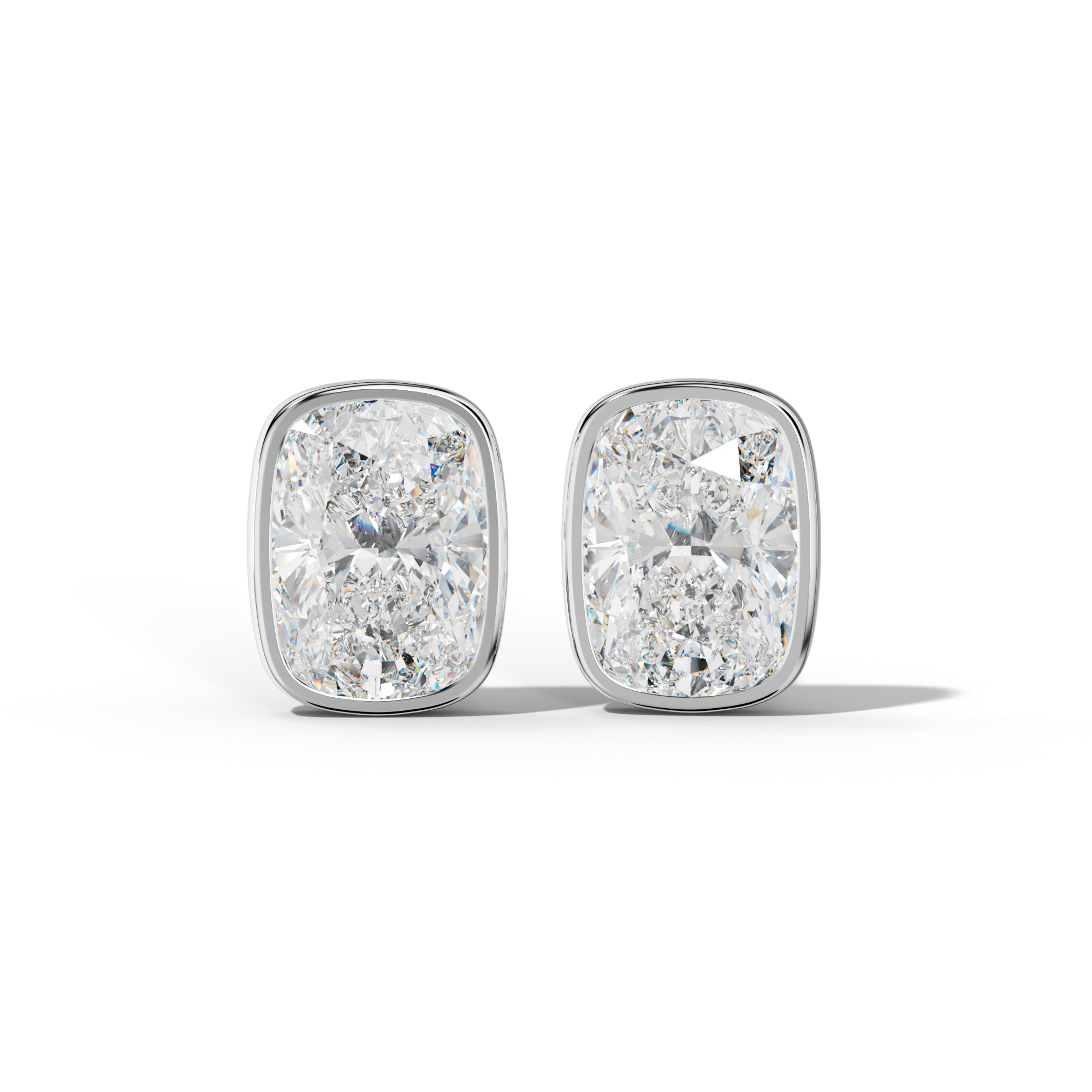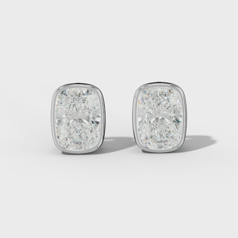 Elongated Cushion Diamond Stud Earrings With Martini Bezel Set