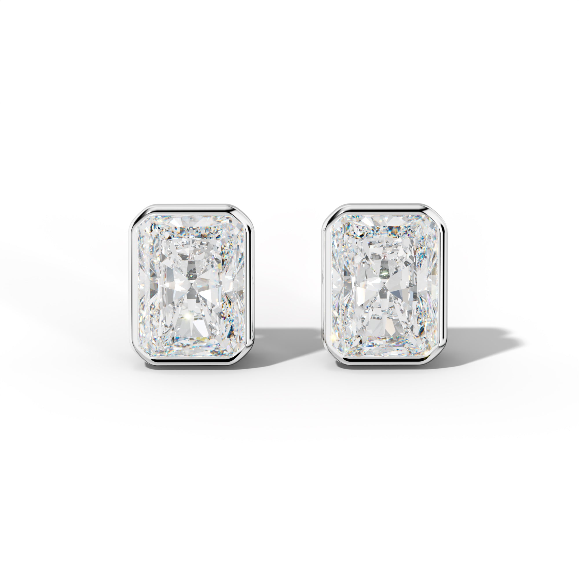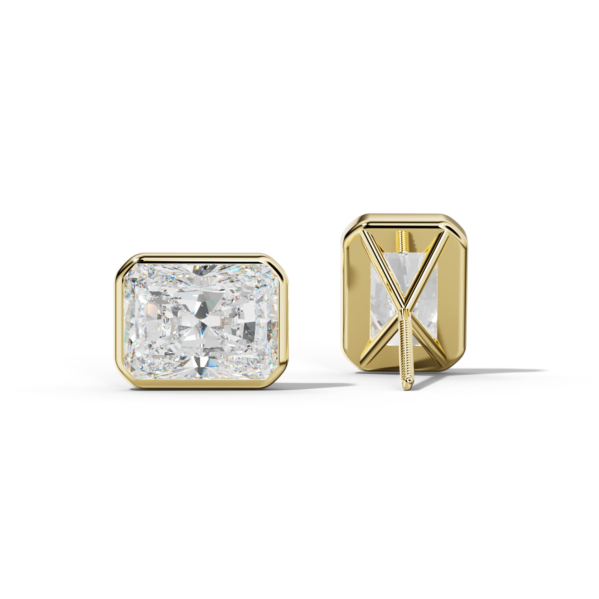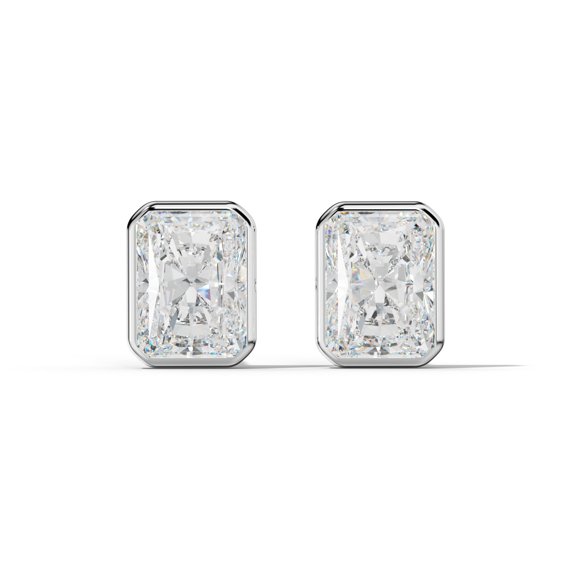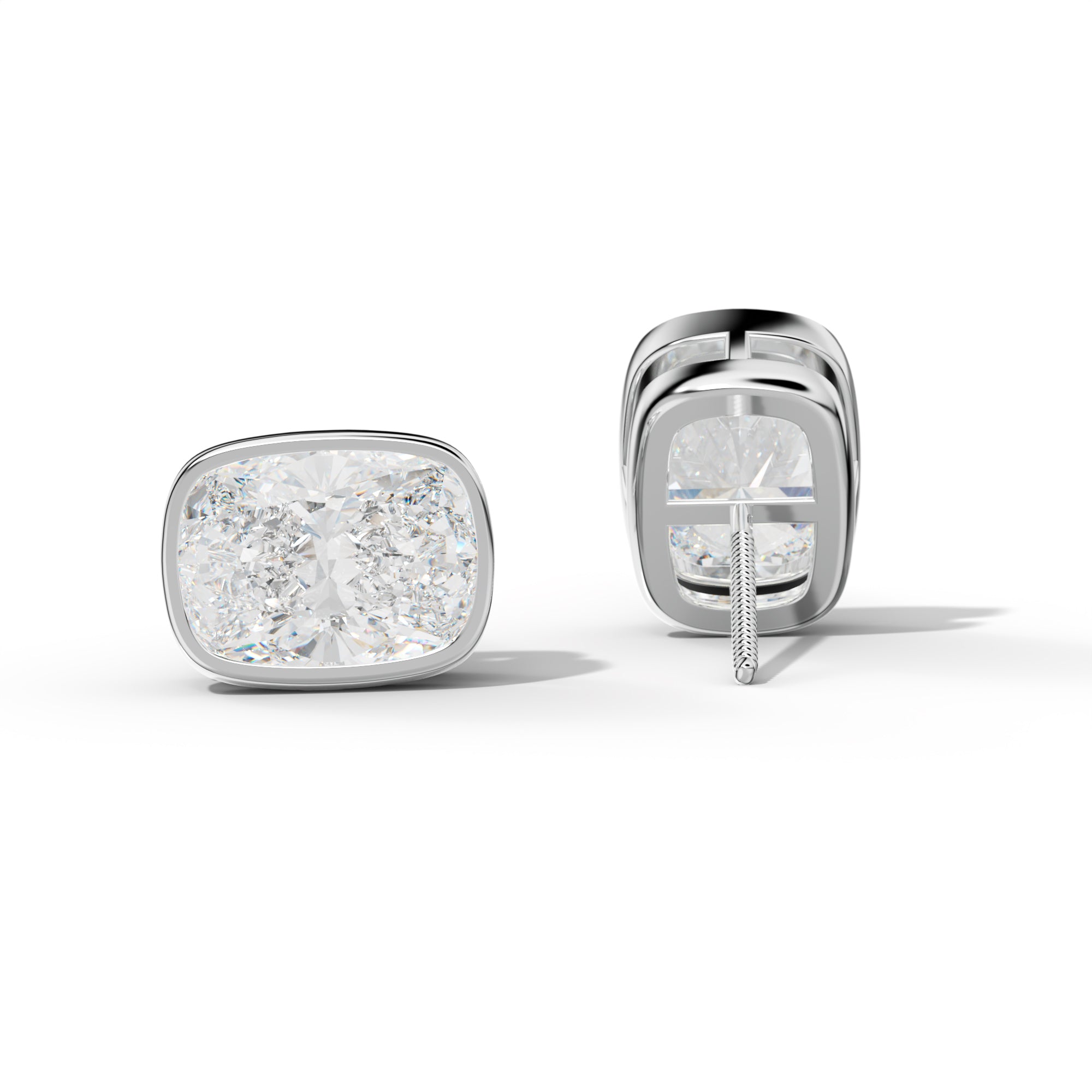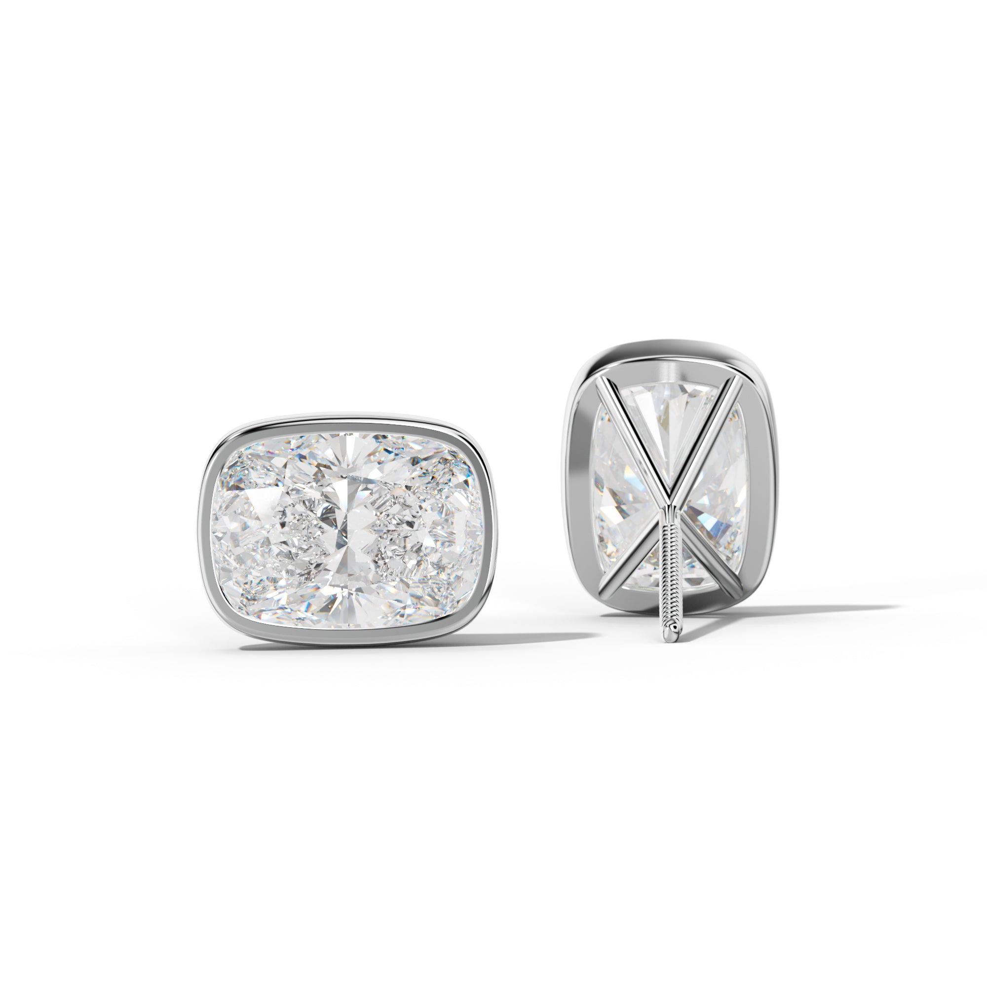 Elongated Cushion Diamond Stud Earrings With Martini Bezel Set
