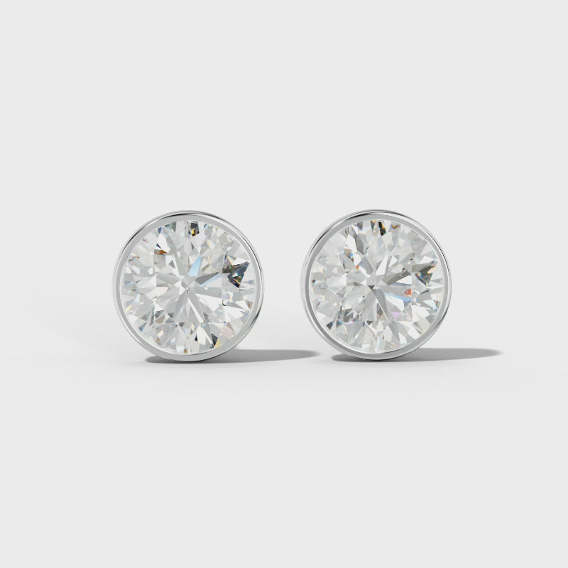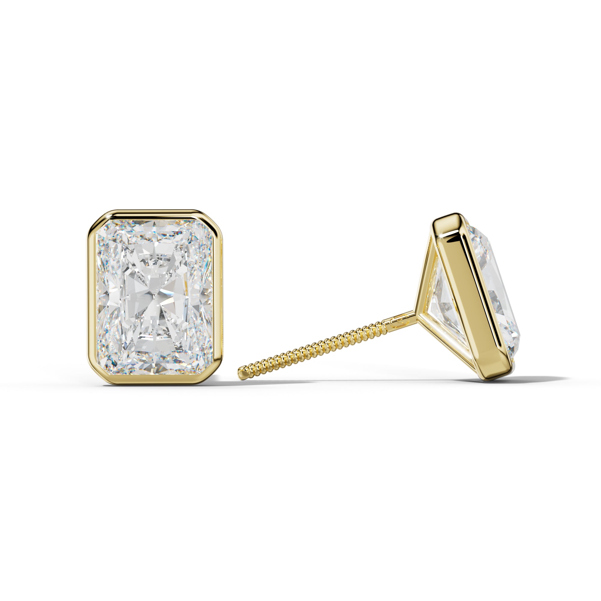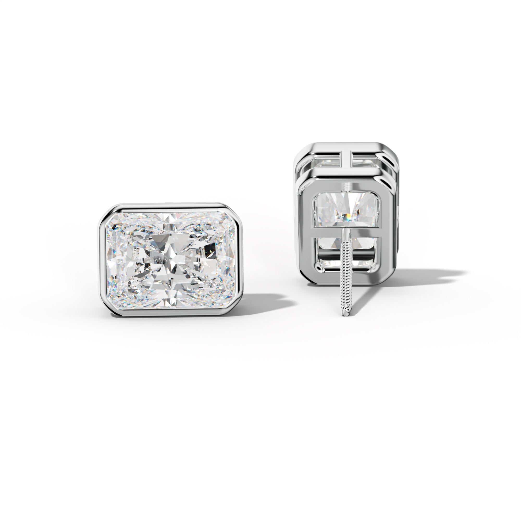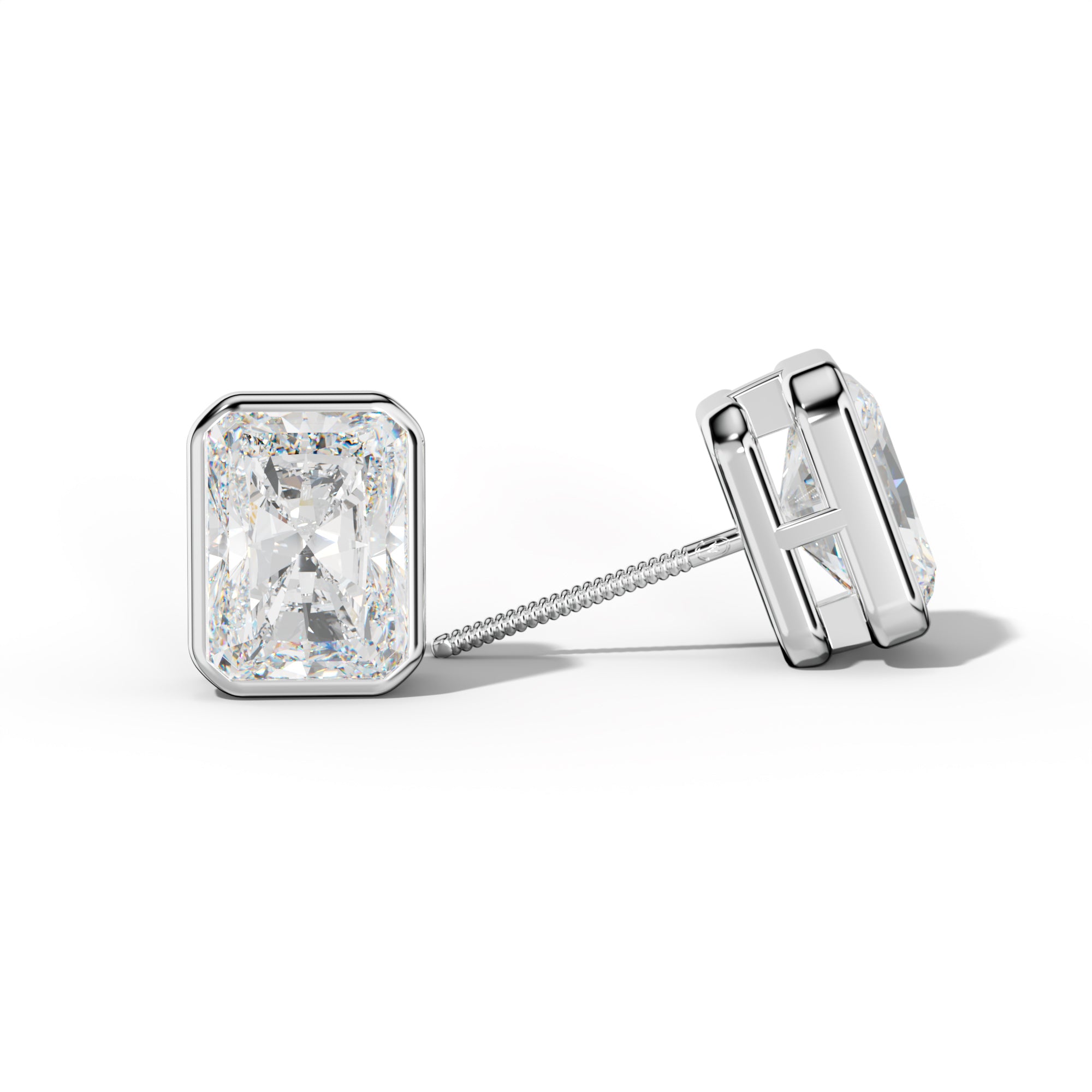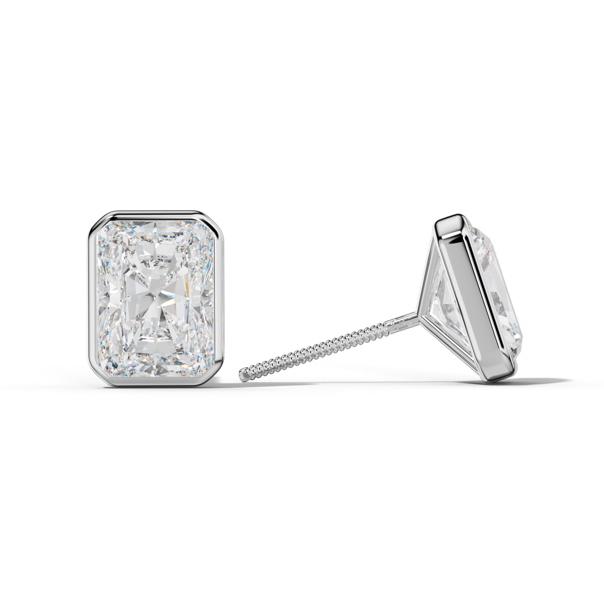 Elongated Cushion Diamond Stud Earrings With Martini Bezel Set