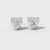 Heart-shaped diamond studs featuring a sophisticated four-claw setting paired with elegant V-prongs for enhanced security and brilliance. Each earring showcases a premium diamond cut to maximize light reflection and sparkle.