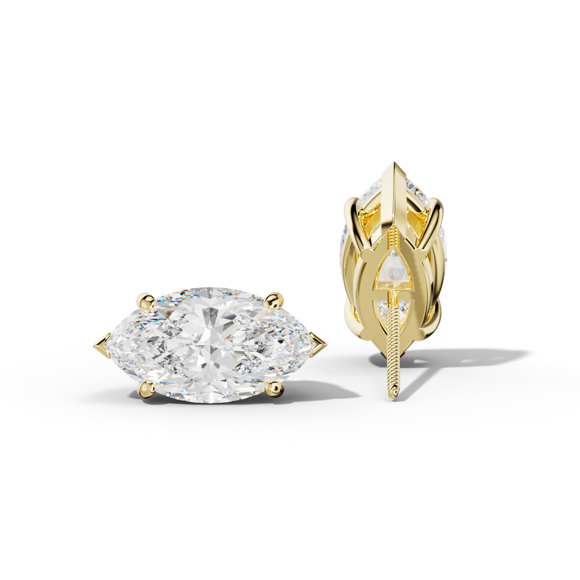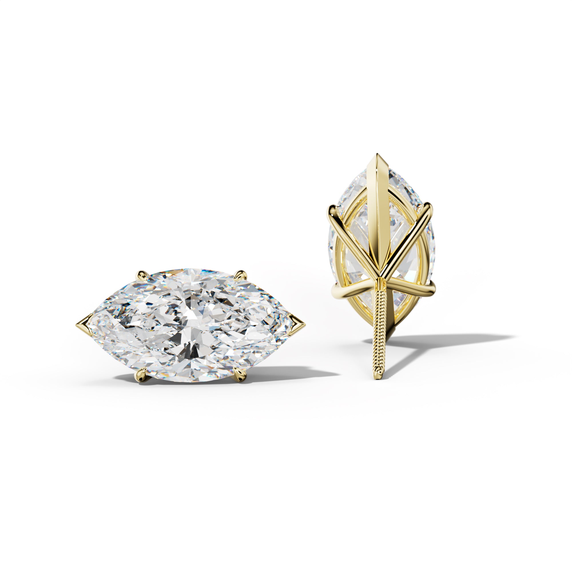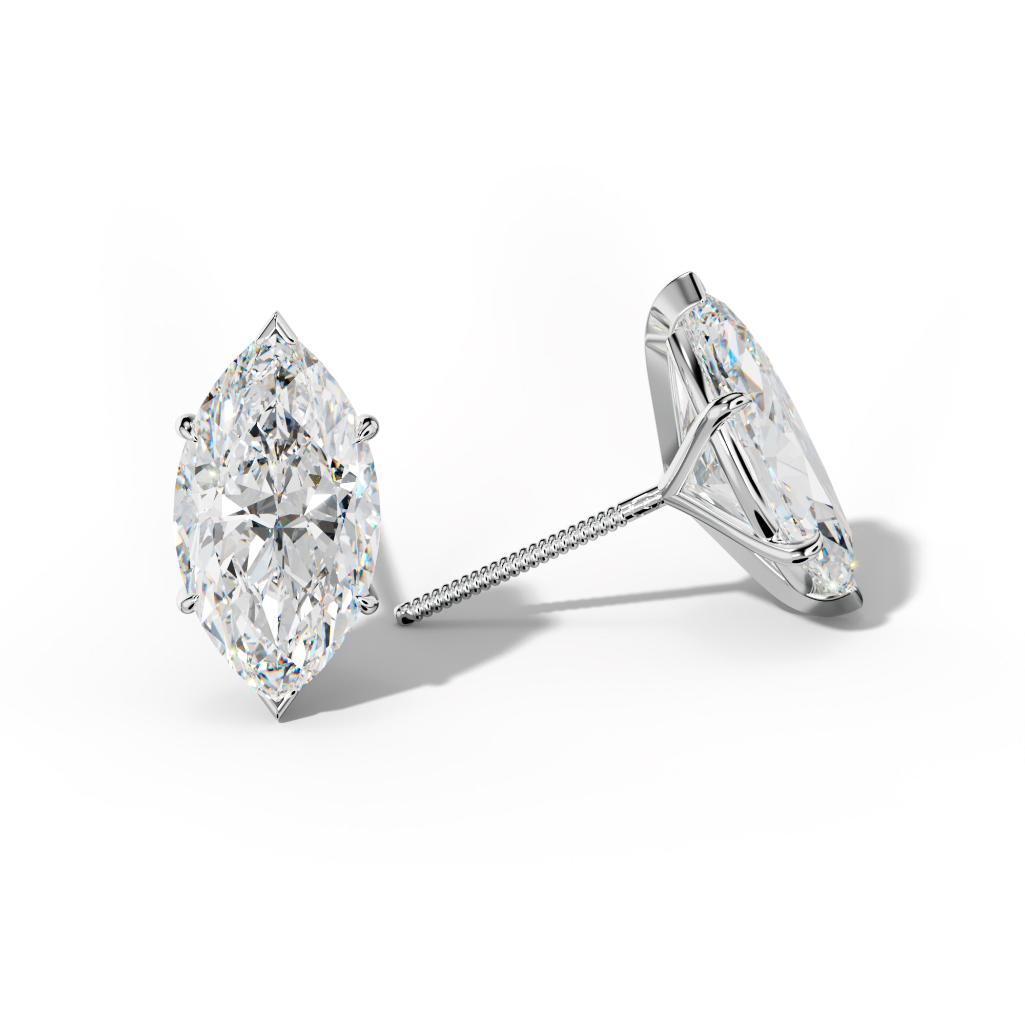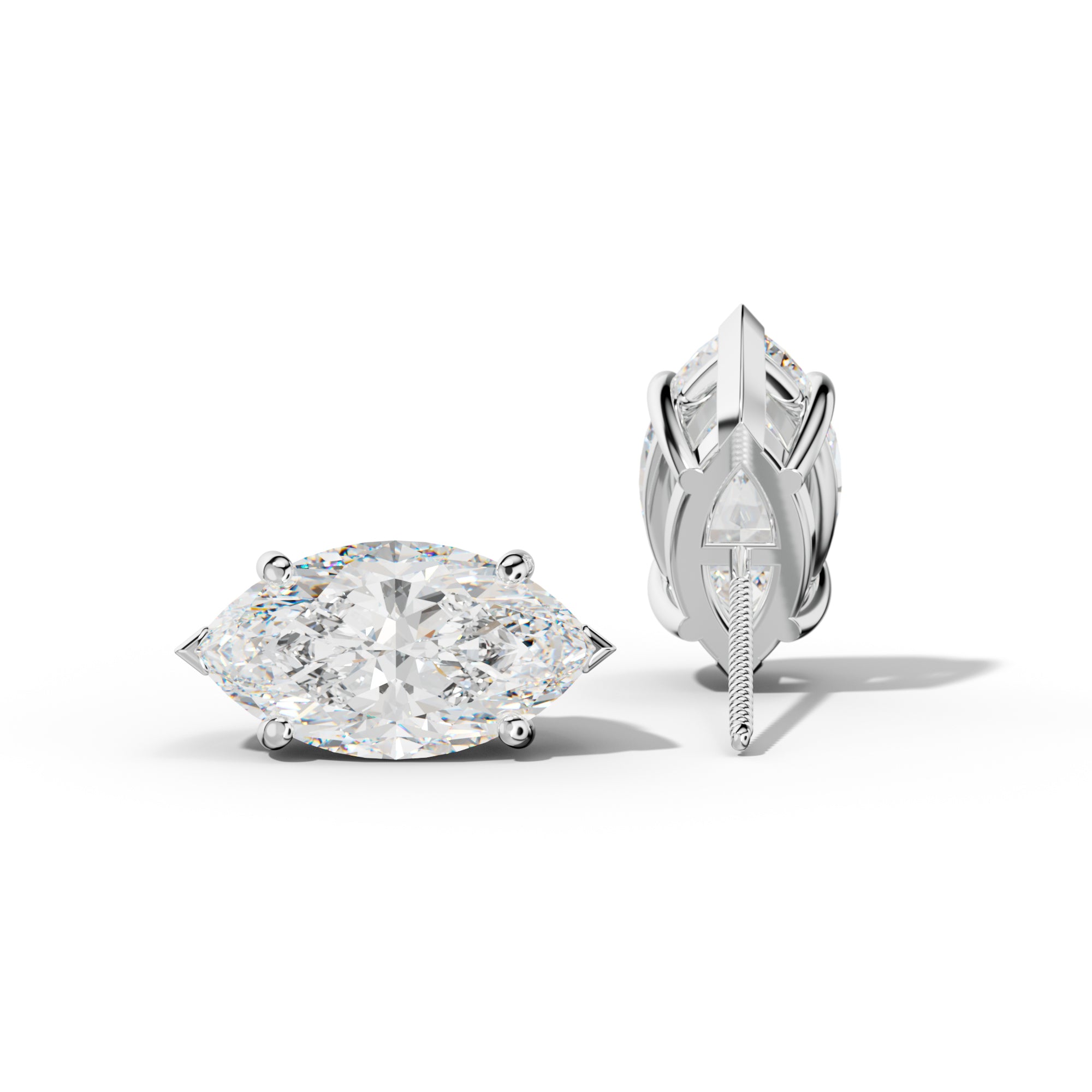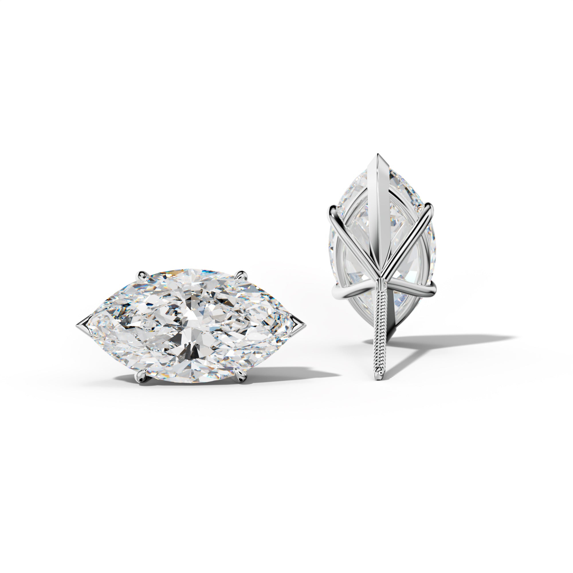 Marquise Diamond Stud Earrings With Four Prong Martini Settings