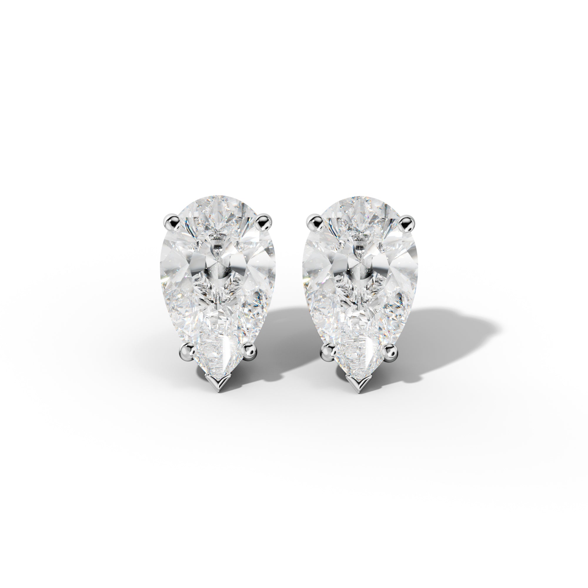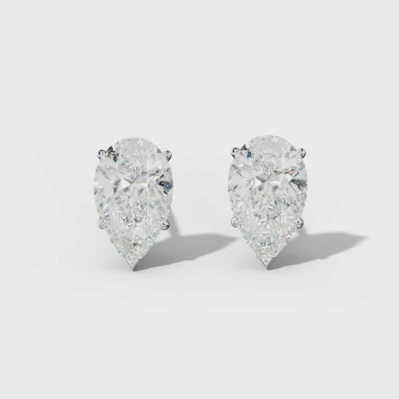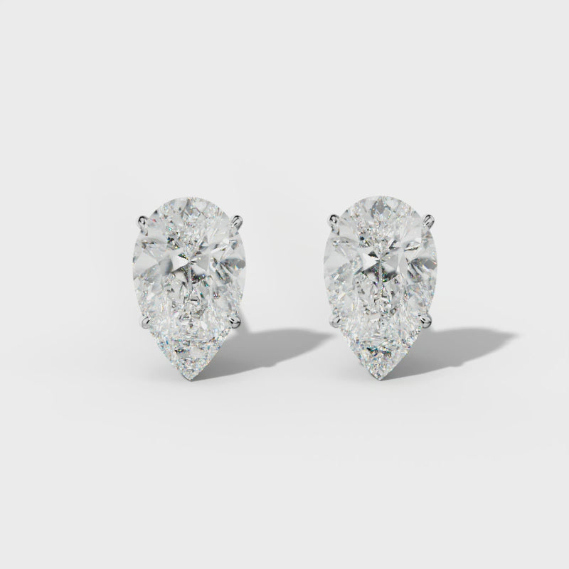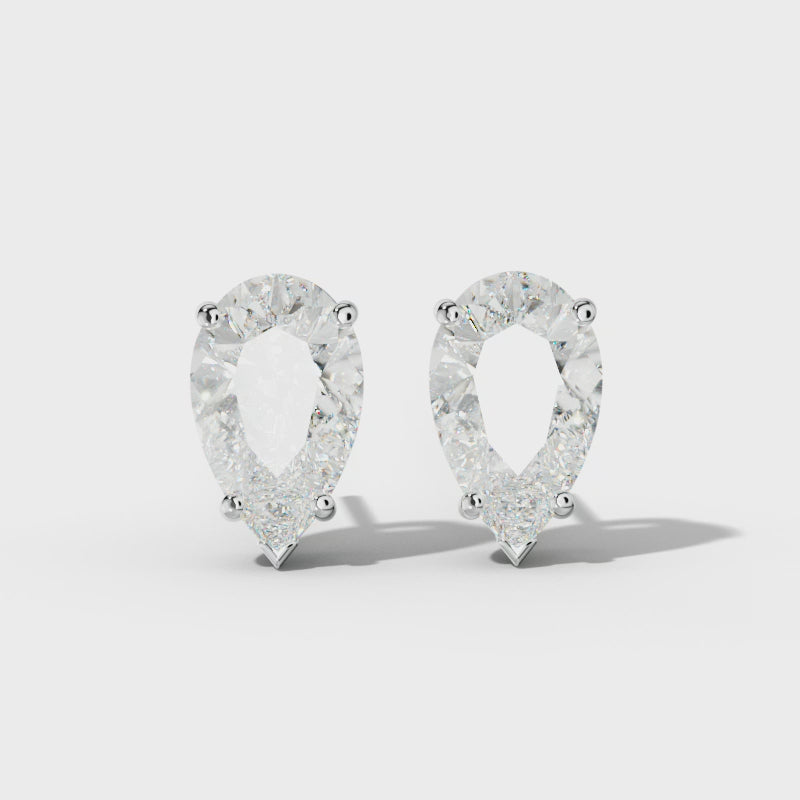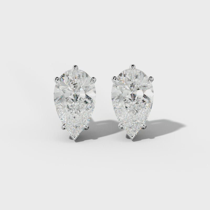 Pear Shape Diamond Stud Earrings With Four Classic And V Prongs