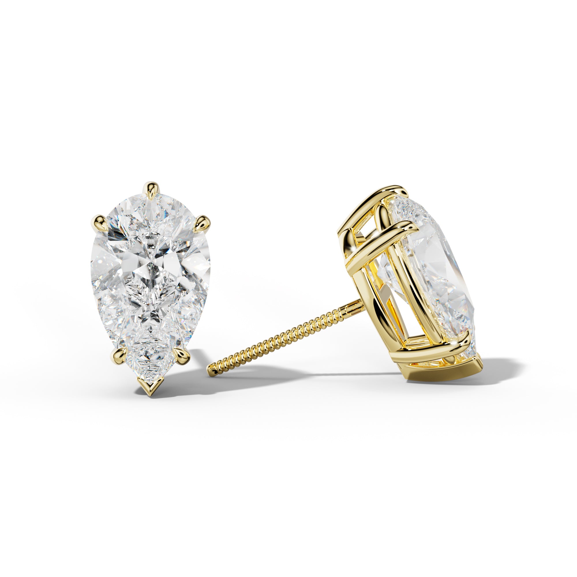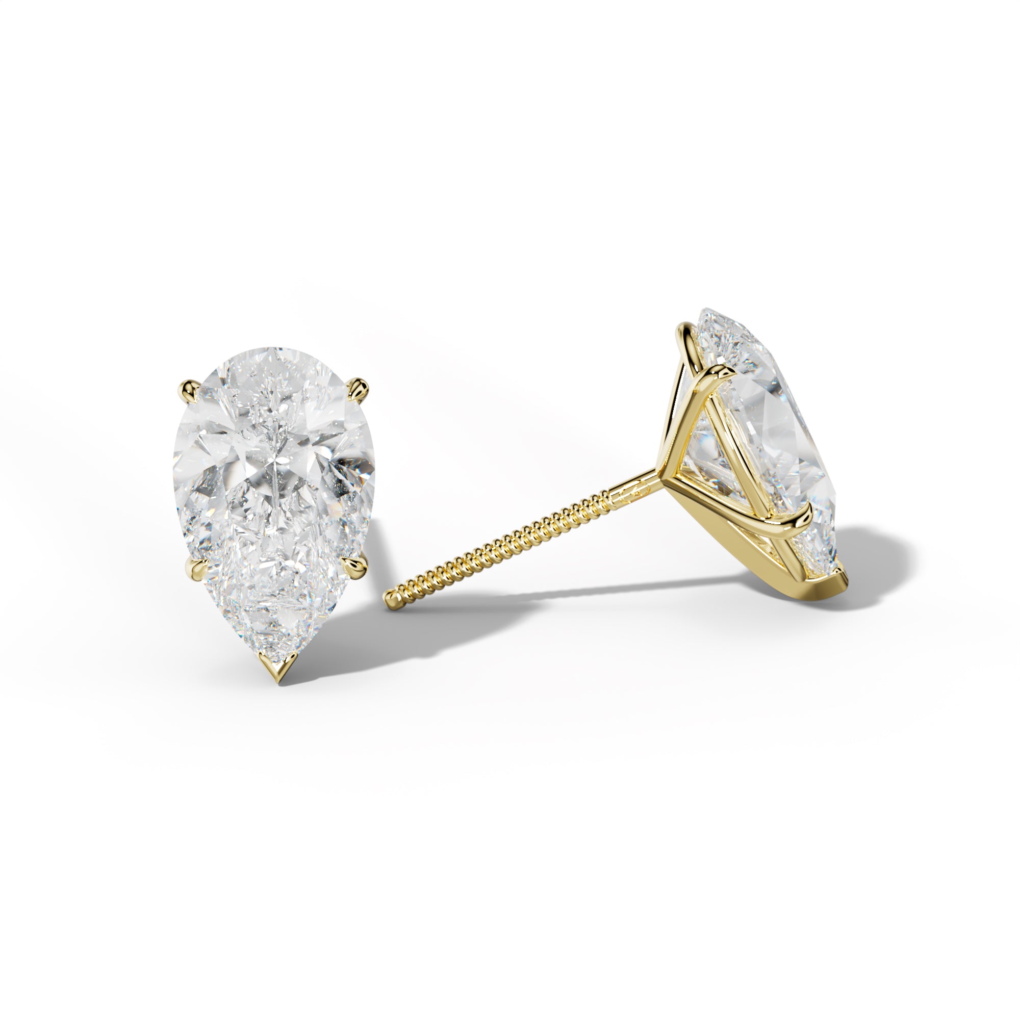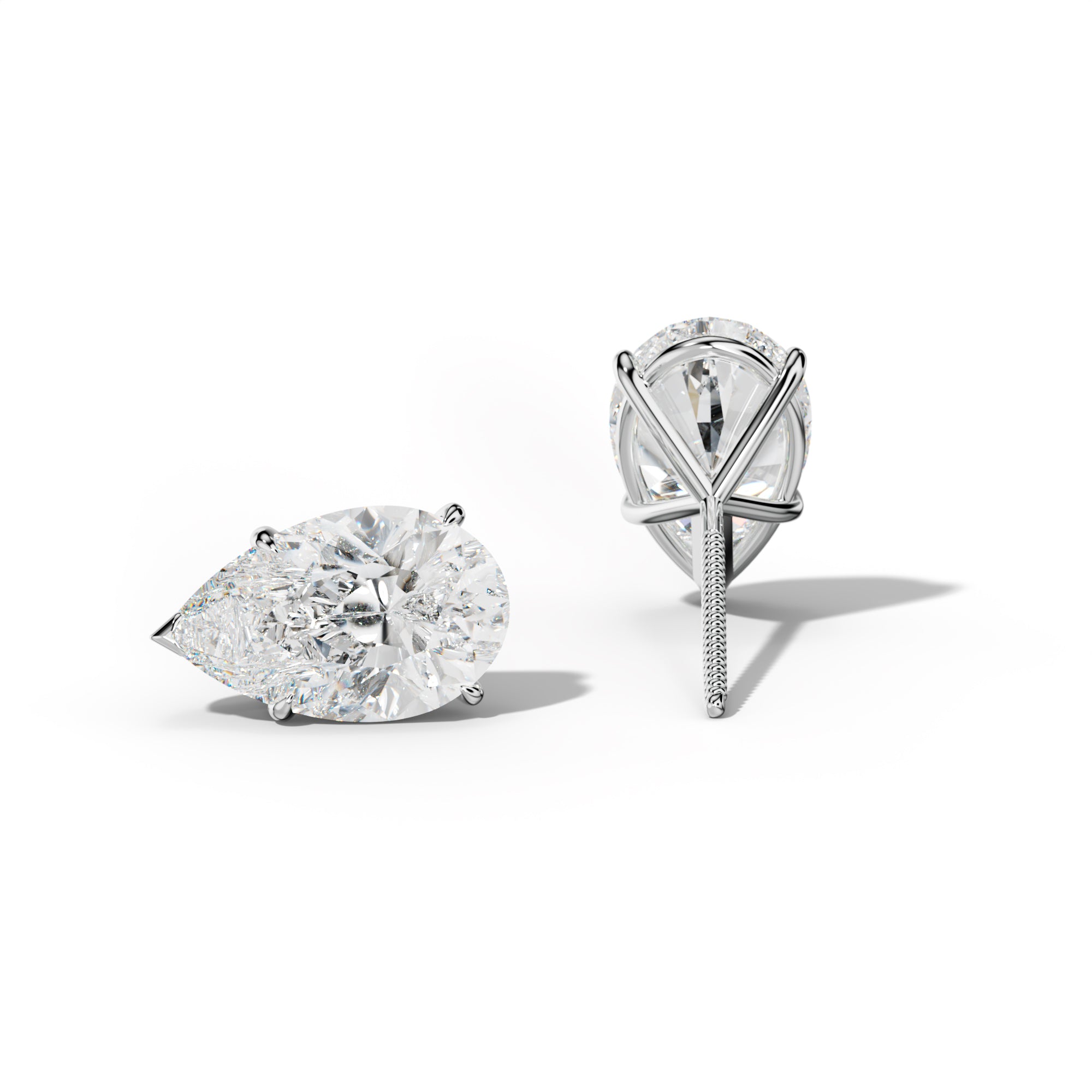 Pear Shape Diamond Stud Earrings With Four Classic And V Prongs