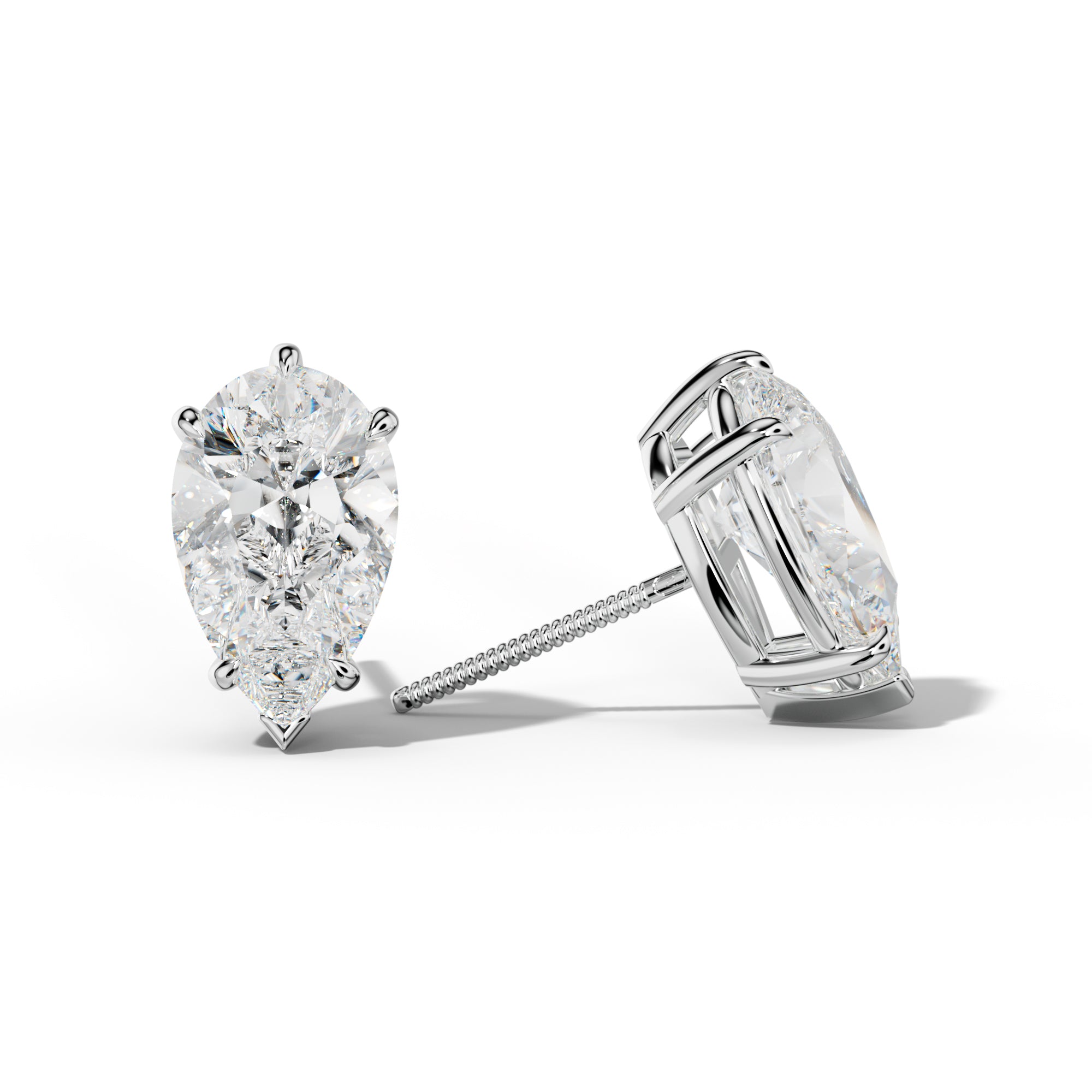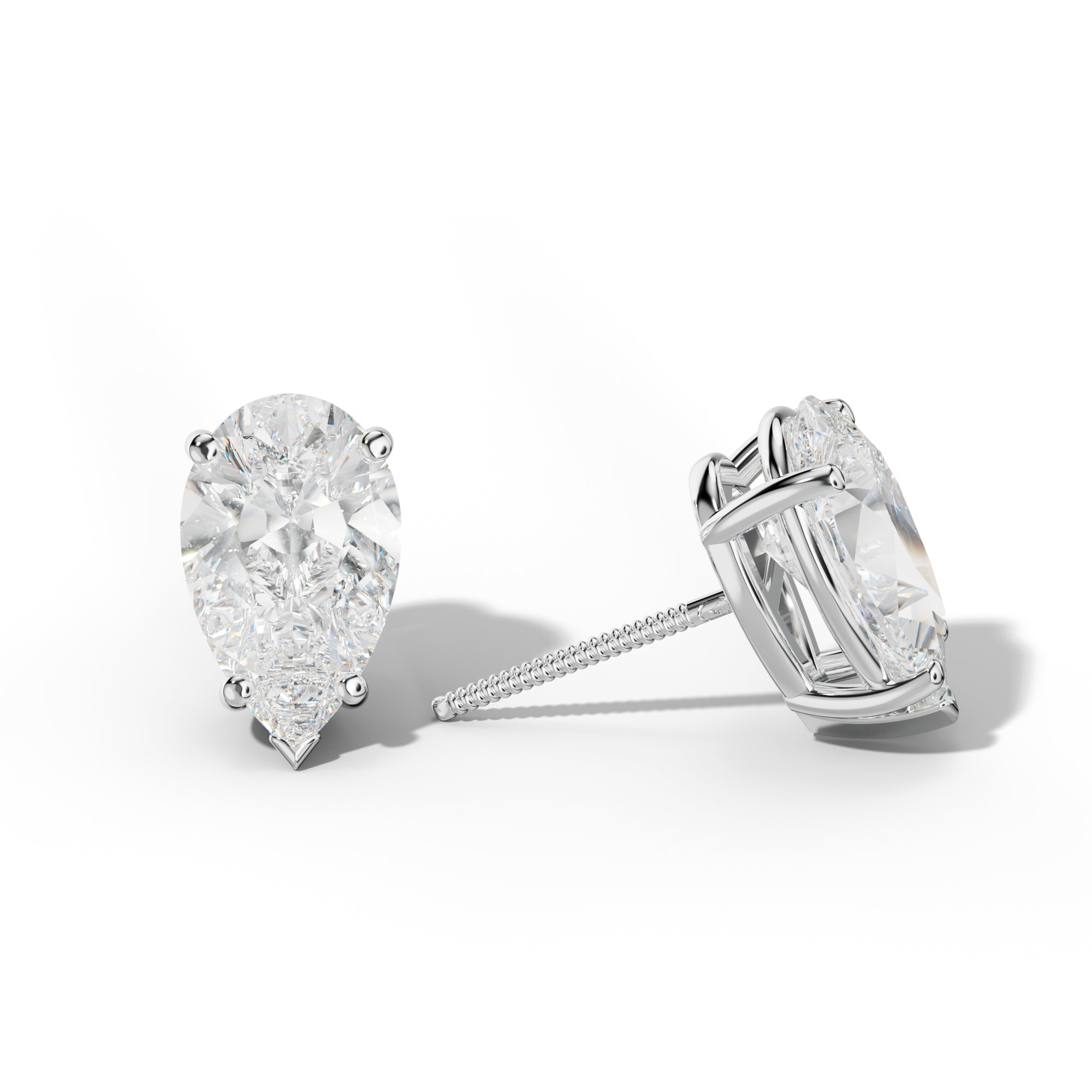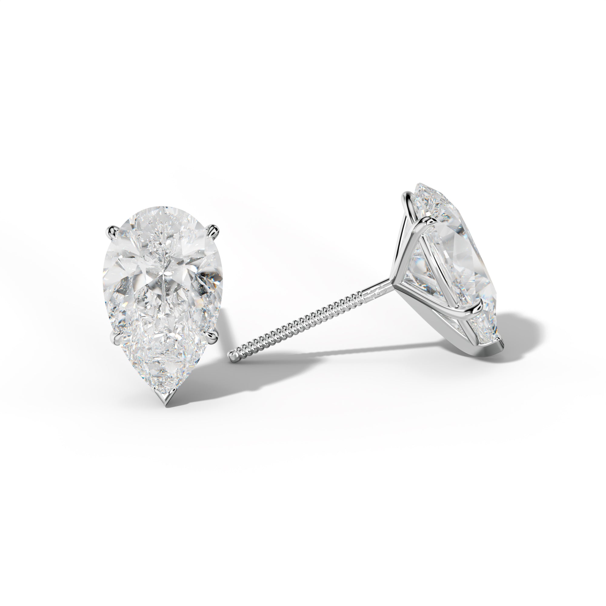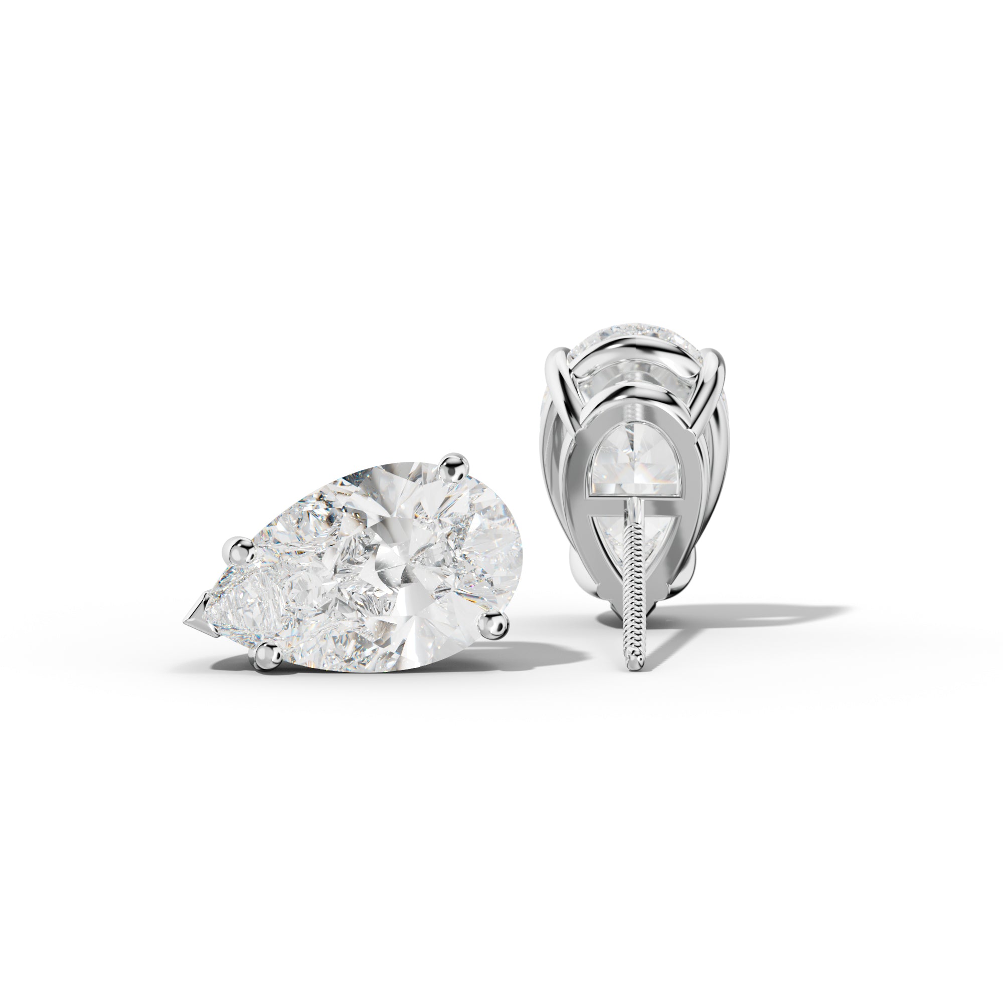 Pear Shape Diamond Stud Earrings With Four Prong Martini Settings