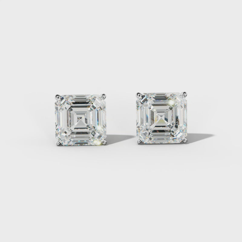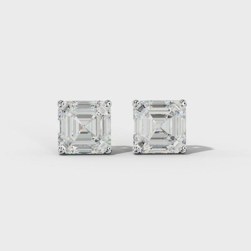 Asscher Diamond Stud Earrings With Four Prong Martini Settings