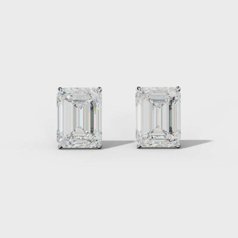 Emerald Cut Diamond Stud Earrings With Four Prong Martini Settings