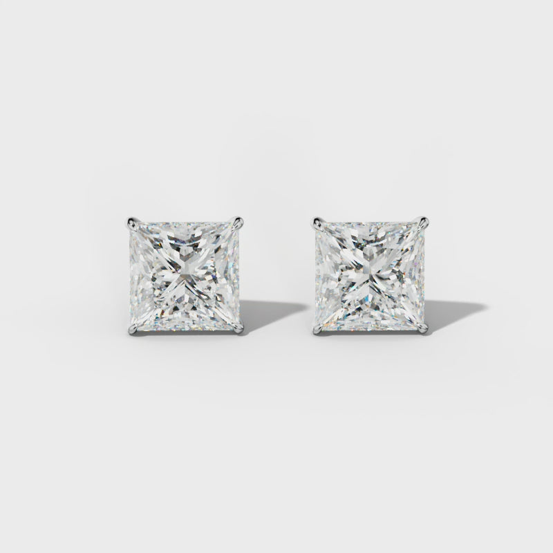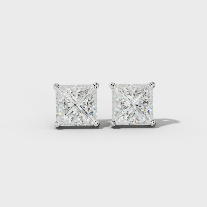Princess Cut Diamond Stud Earrings With Four Prong Martini Settings