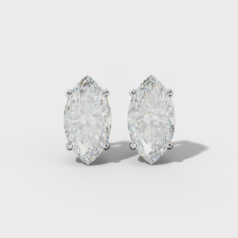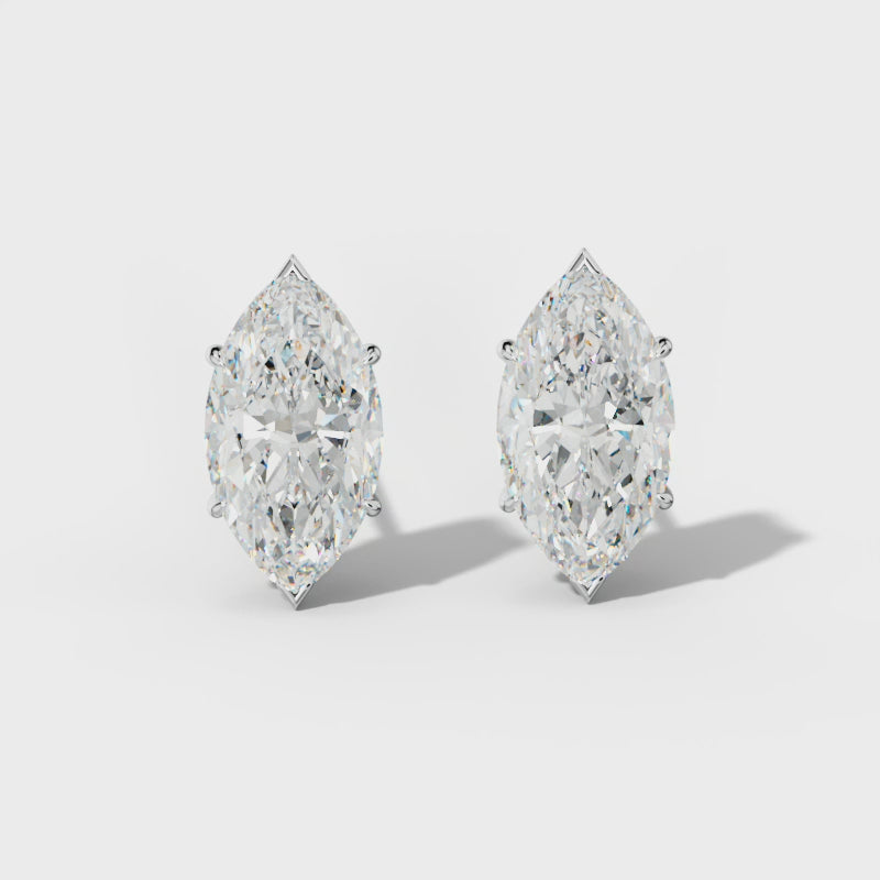 Marquise Diamond Stud Earrings With Four Classic And V Prongs