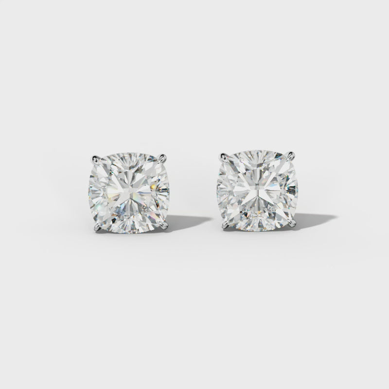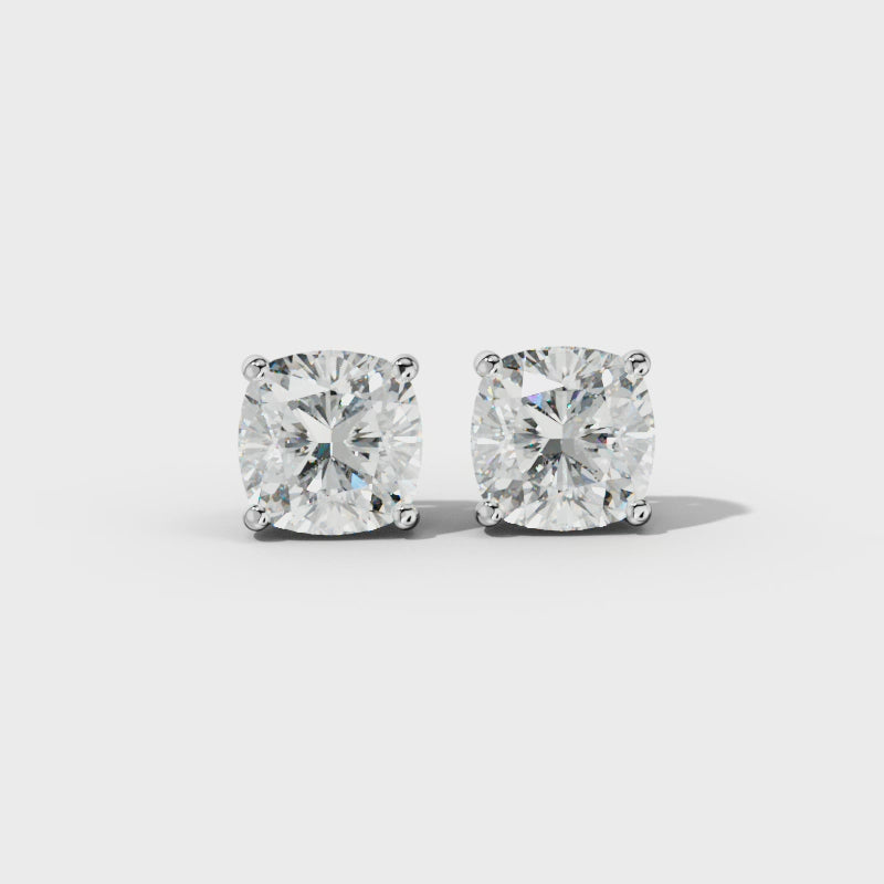 Cushion Diamond Stud Earrings With Four Prong Martini Settings