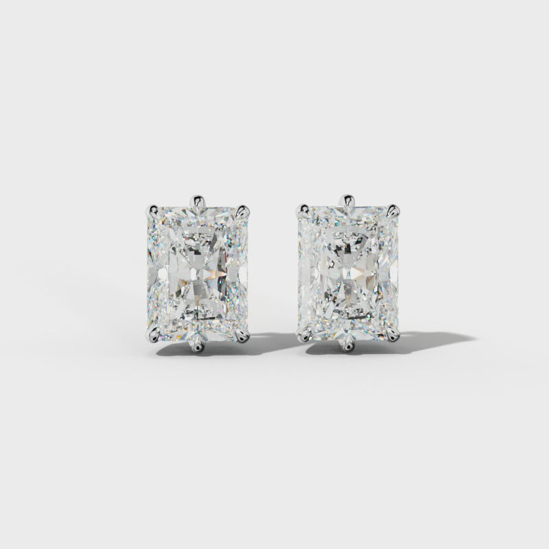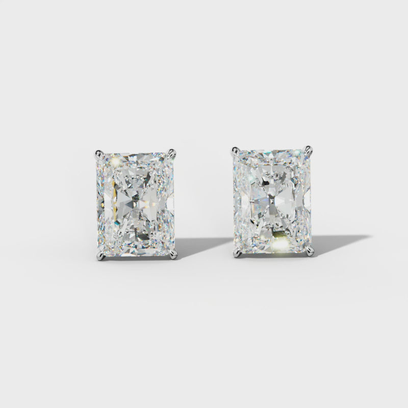 Radiant Diamond Stud Earrings With Four Prong Martini Settings