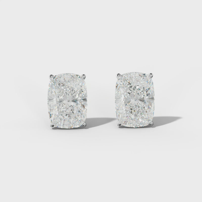 Elongated Cushion Diamond Stud Earrings With Four Prong Martini Settings