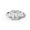 The Hannah Engagement Ring showcases a timeless three-stone design, featuring a striking emerald cut center diamond flanked by elegant pear-shaped side stones. This expertly crafted ring balances classic sophistication with unique detailing, offering a refined symbol of enduring commitment and style. Ideal for those seeking a distinctive yet traditional engagement ring.