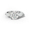 The Hannah Classic Three Stone Engagement Ring features a timeless round diamond centerpiece flanked by elegant pear-shaped side stones. This expertly crafted design balances classic sophistication with a unique silhouette, enhancing brilliance and visual appeal. Ideal for those seeking a refined yet distinctive symbol of commitment.