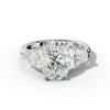 The Ivy Engagement Ring features a stunning three-stone design, showcasing a brilliant oval center diamond flanked by elegant trilliant-cut side stones. This carefully crafted setting enhances the ring’s brilliance and adds dynamic sparkle from every angle. Designed for lasting beauty and refined style, it is an ideal choice for those seeking an expert blend of classic elegance and modern detailing.